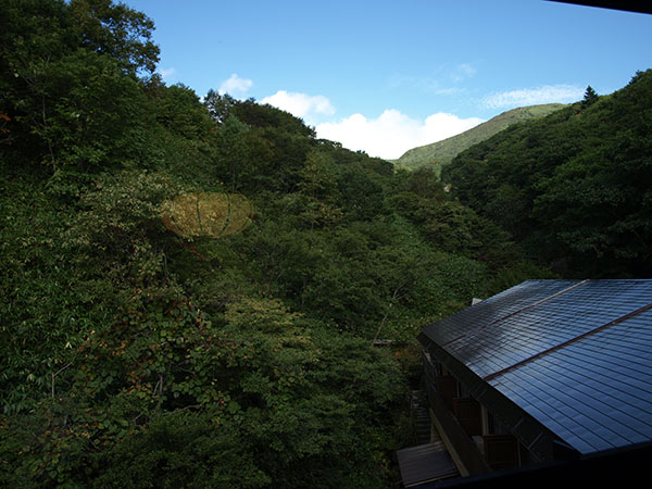 那須の温泉には子供の時から数えて何十回と行っているのですが,大丸温泉の存在は有名なので知っていたものの,まさか温泉が本当に川になっているとは想像を超えていたので行ったことがなく,よく行ったお土産屋さん長屋のすぐ後ろがこんな風になっているとは思いませんでした。ところで子供の頃いつも行ってたお土産屋さん長屋は,かつてに比べ,たいへんひなびたものになってしまいました。聞いたところ不況になってからお客さんが減ってしまったそうです。少なくなったお客さんも塩原温泉に取られてしまったそうです。那須湯元温泉街も同様に可哀想です。塩原温泉は温泉街にまだ少し活気があります。黒磯駅ではなく那須塩原駅が東北新幹線停車駅になったのが大きかったであろうと思います。そういえば鬼怒川温泉の温泉街もかつての繁栄が無くなりました。それでも大丸旅館は結構人がいます。やはり名物の川湯が人気を集めています。温泉が本当の川になってザーと豪快に流れているのです。感動的ですらあります。湯船にそそぐのが普通ですが,そうではなくて,かなり多量に流れて来る温泉湯を岩でせき止めて湯船にしています。しかも源流が側なのでかなり高温です。お湯は透明ですが,メタケイ酸を含んでいて美肌の湯と呼ばれています。混浴の上流に女性専用の露天風呂があり,混浴とは壁で仕切られています。男性専用の内湯もあります。飲泉所もあり飲むことができます。夕食は源泉しゃぶしゃぶが出ました。また源泉で作った日本酒が幻の秘酒となっていたので注文しました。特に温泉の味はしません。14000円のプランは満室になっていたので17000円のプランになりました。利用した17000円のプランは正面の新館ではなく,別館の4階に案内されました。山の見える部屋では一番眺めの良い部屋だそうです。夕食は源泉しゃぶしゃぶ以外は普通でした。十五夜だったのでウサギの大根をひたしたのが出ました。すごく上手に切れてあったので写真に撮りました。ただ,朝食は旅館の朝飯以外になぜか鍋が出て節電で弱冷房だったため暑くて味が良く分かりませんでした。夕食も朝食も食事処の小さな個室でした。1人で来ている人が多いのも特徴的でした。外国人観光客はこういう変わった温泉が好きそうですが1人もいませんでした。館内には乃木希典将軍の私物がたくさん飾ってあります。説明書きによりますと,大丸温泉の身内の方が乃木将軍の最後の書生だったそうで,頻繁に大丸温泉に訪れていたそうです。サーベルなんかもありました。